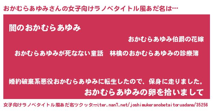 | 恥ずかしいあだ名 | 『オカムラアユミデラックス』『おかちん』 |