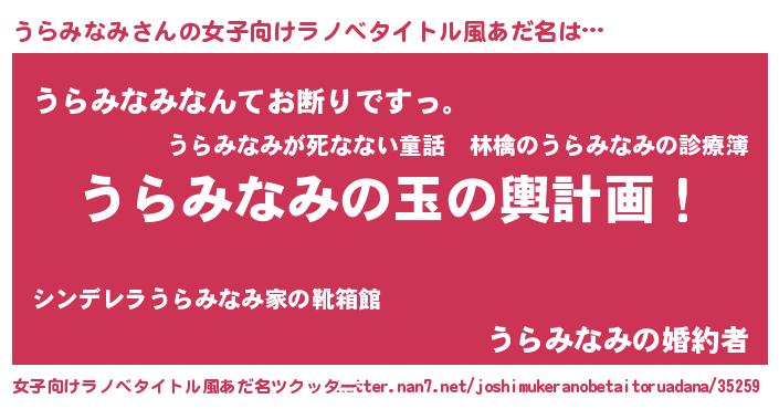 | 胡散臭い通販商品みたいなあだ名 | 『テレビで話題のアガリクス…その名も「うらみなみ」』 |