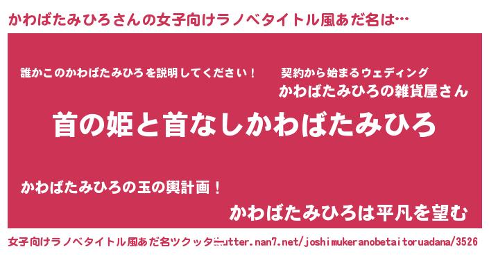 | 胡散臭い通販商品みたいなあだ名 | 『必ず成功する水晶球…その名も「かわばたみひろ」』 |