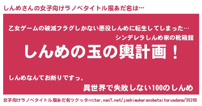 | 胡散臭い通販商品みたいなあだ名 | 『あなたにだけ特別に提供する限定10本のレアな日本酒…その名も「しんめ」』 |
