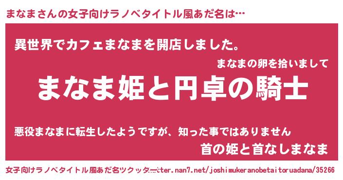 | 胡散臭い通販商品みたいなあだ名 | 『モテモテ間違いなし水晶球…その名も「まなま」』 |