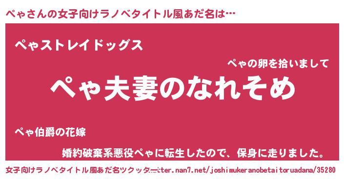 | 男性向けラノベタイトル風あだ名 | 『おまえをオタクにしてやるから、俺をぺゃにしてくれ! 』 |