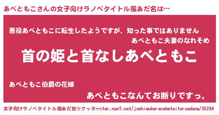 | 意味不明あだ名 | 『住所不定無職あべともこ(43歳)』 |
