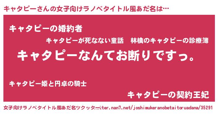 | ファンタジー風あだ名 | 『ゼキャトゥ』『エターナルキャタピーー』 |