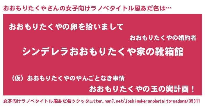 | 胡散臭い通販商品みたいなあだ名 | 『信頼と実績のネックレス…その名も「おおもりたくや」』 |