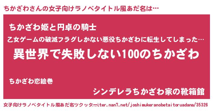 | 男性向けラノベタイトル風あだ名 | 『ちかざわという概念が存在しない退屈な世界 』 |