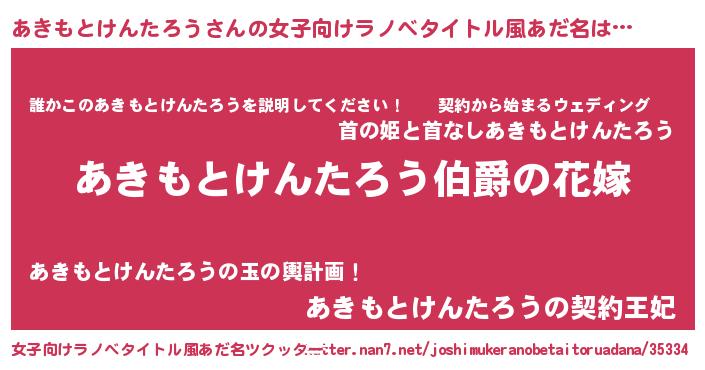 | 男性向けラノベタイトル風あだ名 | 『やはりあきもとけんたろうの青春ラブコメはまちがっている 』 |