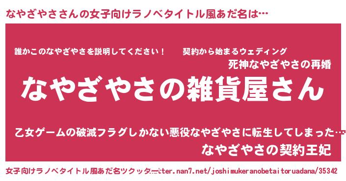 | 男性向けラノベタイトル風あだ名 | 『やはりなやざやさの青春ラブコメはまちがっている 』 |