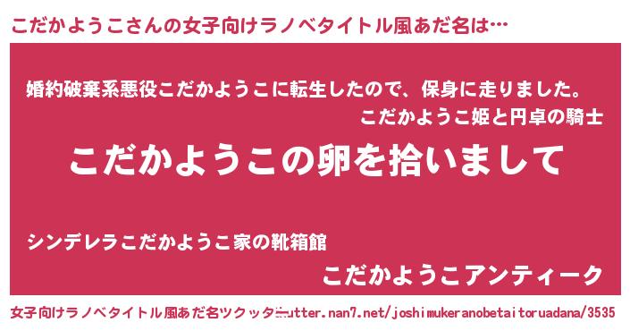 | 料理風あだ名 | 『ポテトとこだかようこのキッシュ☆』 |