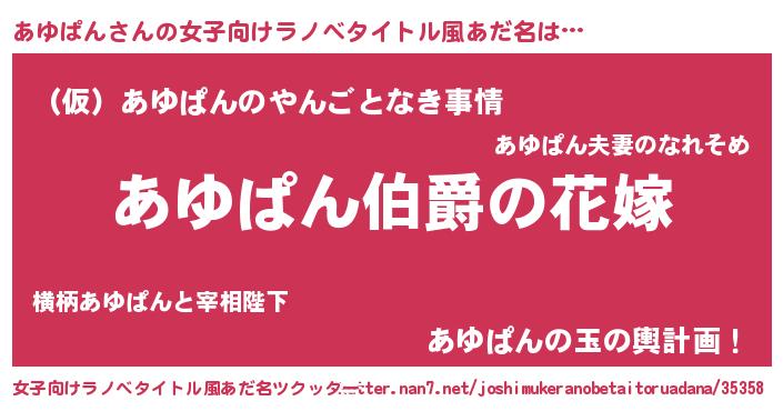 | ファンタジー風あだ名 | 『エターナルアユパンー』『アユフェル』 |