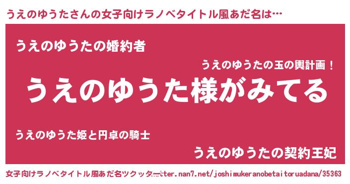 | 男性向けラノベタイトル風あだ名 | 『うえのゆうたの嫁は女の子じゃないと思った?』 |