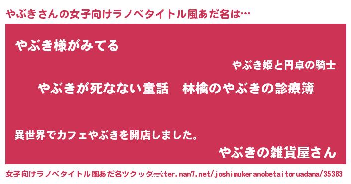 | ファンタジー風あだ名 | 『ヴァルヤブーナ』『ファントムヤブス』 |