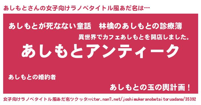 | 恥ずかしいあだ名 | 『アシモトデラックス』『あしちん』 |