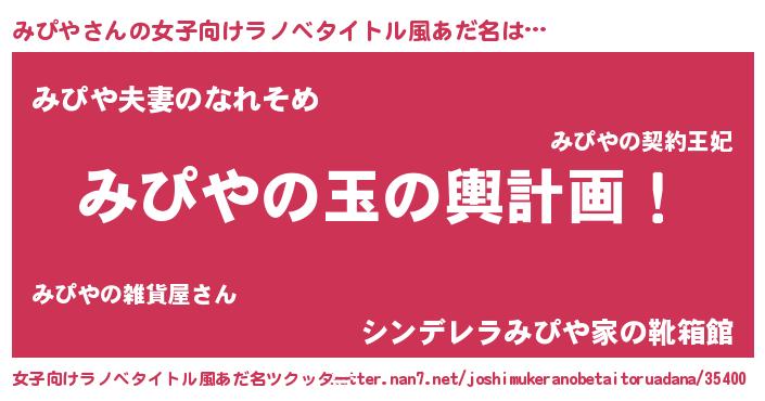 | 男性向けラノベタイトル風あだ名 | 『転生したらみぴやだった件』 |