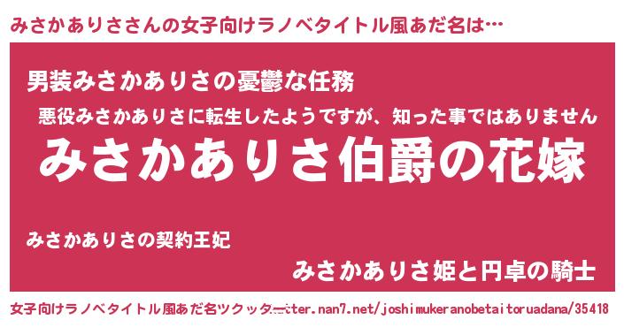 | 意味不明あだ名 | 『みさかありさフォーエバー』 |