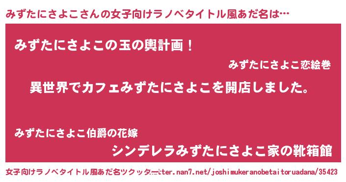 | 胡散臭い通販商品みたいなあだ名 | 『前代未聞の健康食品…その名も「みずたにさよこ」』 |