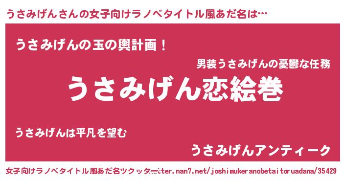 | 男性向けラノベタイトル風あだ名 | 『ノーゲーム・ノーウサミゲン』 |