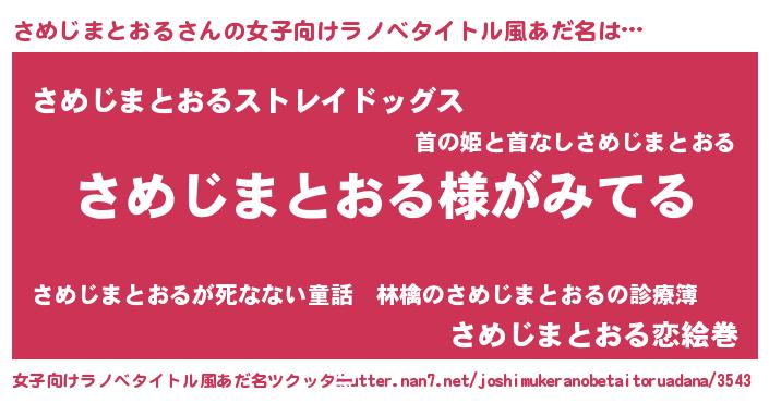 | 男性向けラノベタイトル風あだ名 | 『さめじまとおるの嫁は女の子じゃないと思った?』 |