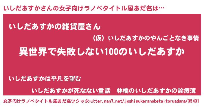 | 胡散臭い通販商品みたいなあだ名 | 『絶対に幸福をもたらす健康食品…その名も「いしだあすか」』 |