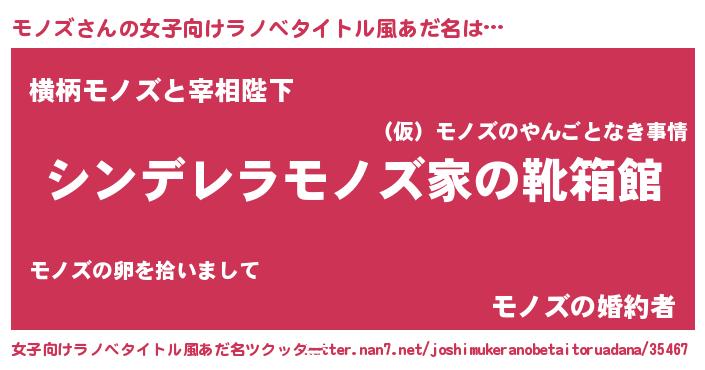 | 男性向けラノベタイトル風あだ名 | 『緋弾のモノズ』『モノズの憂鬱』 |