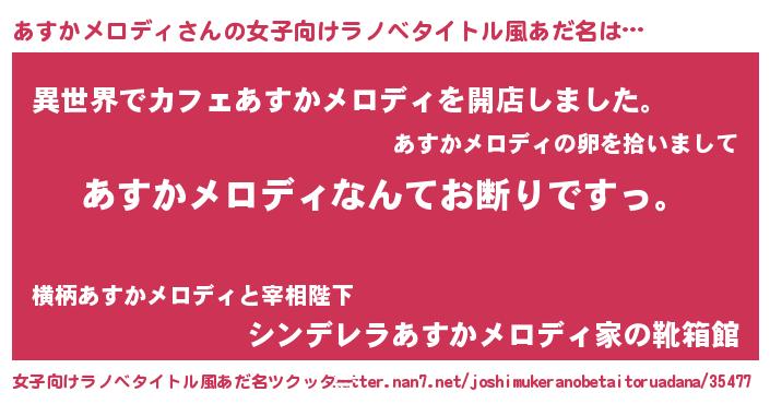 | 意味不明あだ名 | 『自称あすかメロディ』 |