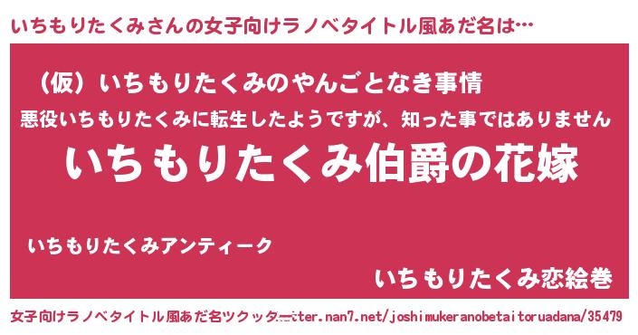 | 男性向けラノベタイトル風あだ名 | 『やはりいちもりたくみの青春ラブコメはまちがっている 』 |