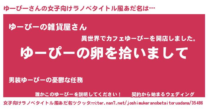 | 男性向けラノベタイトル風あだ名 | 『ダンジョンにゆーぴーを求めるのは間違っているだろうか』 |