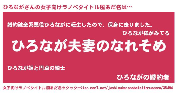 | 男性向けラノベタイトル風あだ名 | 『おまえをオタクにしてやるから、俺をひろながにしてくれ! 』 |