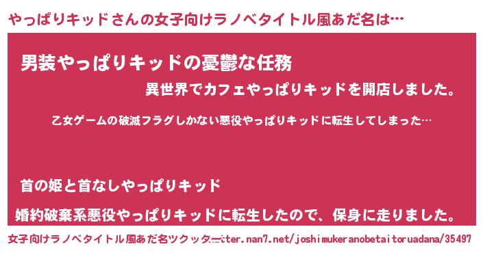 | 胡散臭い通販商品みたいなあだ名 | 『世界中を虜にした世界で10本だけ現存している希少なブランデー…その名も「やっぱりキッド」』 |