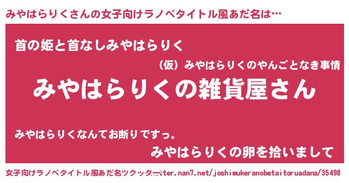 | 胡散臭い通販商品みたいなあだ名 | 『幸せが訪れる高級そうな壺…その名も「みやはらりく」』 |