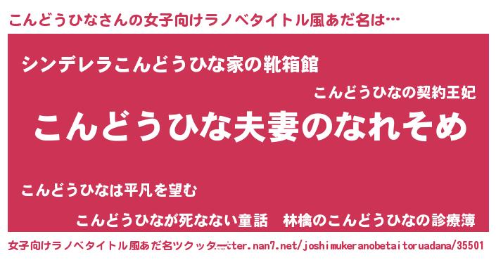 | 男性向けラノベタイトル風あだ名 | 『おまえをオタクにしてやるから、俺をこんどうひなにしてくれ! 』 |