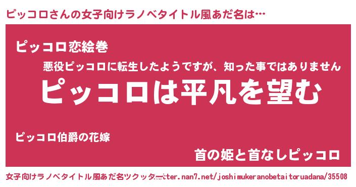| 男性向けラノベタイトル風あだ名 | 『ダンジョンにピッコロを求めるのは間違っているだろうか』 |