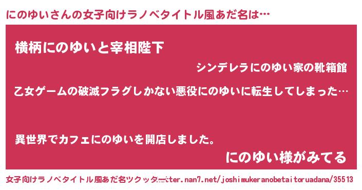 | 男性向けラノベタイトル風あだ名 | 『この素晴らしい世界ににのゆいを!』 |