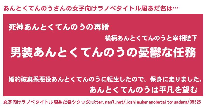 | 男性向けラノベタイトル風あだ名 | 『うちのあんとくてんのうが世界を掌握している!』 |