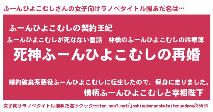 | ヘコむあだ名 | 『ふーんひよこむし(笑)』『ふーお』 |