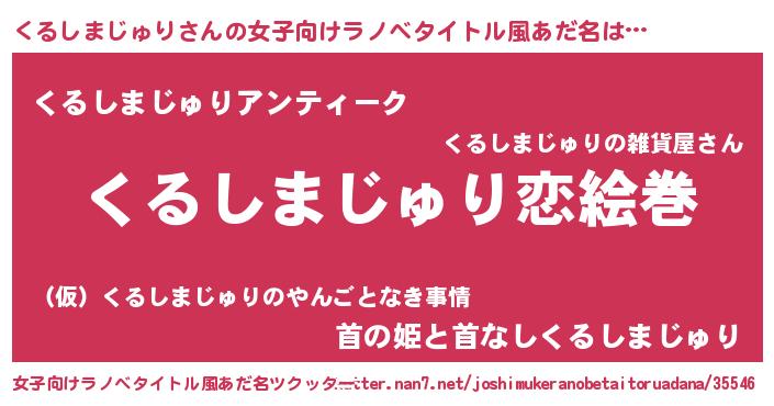 | 男性向けラノベタイトル風あだ名 | 『おまえをオタクにしてやるから、俺をくるしまじゅりにしてくれ! 』 |