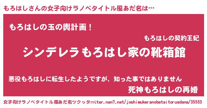 | ヒーロー風カッコイイあだ名 | 『愛の使者もろはし』『ネオモロハシ』 |