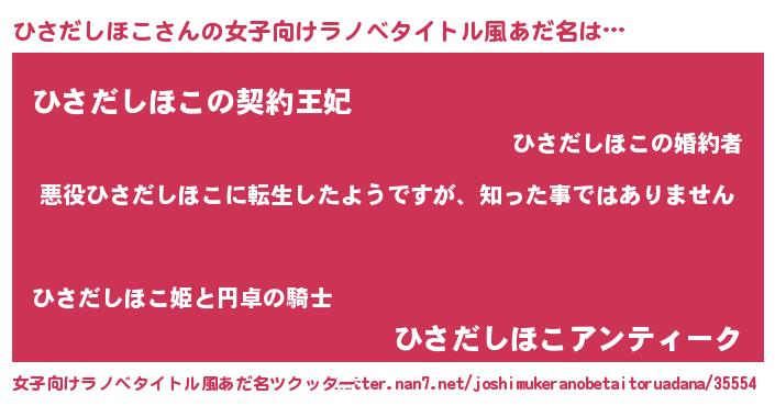 | 男性向けラノベタイトル風あだ名 | 『この素晴らしい世界にひさだしほこを!』 |