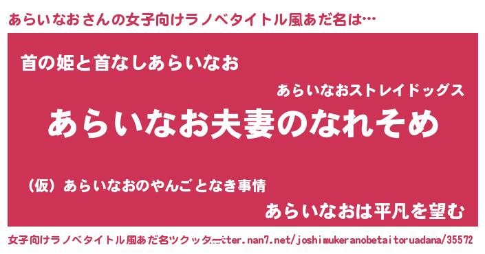 | ヒーロー風カッコイイあだ名 | 『友情の使者あらいなお』『幻影騎士アラ』 |
