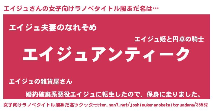 | 男性向けラノベタイトル風あだ名 | 『魔法科高校のエイジュ』 |