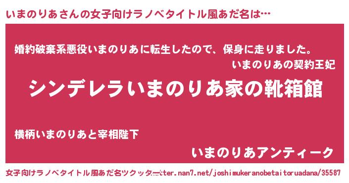 | 男性向けラノベタイトル風あだ名 | 『緋弾のイマノリア』 |