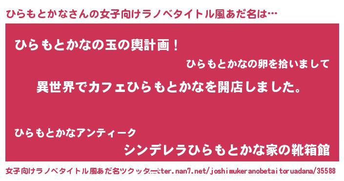 | 男性向けラノベタイトル風あだ名 | 『誰もが恐れるあのひらもとかなが、ぼくの専属メイドになるようです。』 |