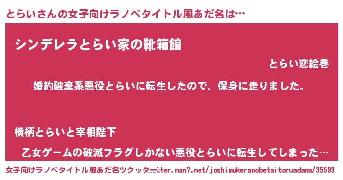 | 胡散臭い通販商品みたいなあだ名 | 『ハリウッド女優が絶賛した100年もののヴィンテージワイン…その名も「とらい」』 |