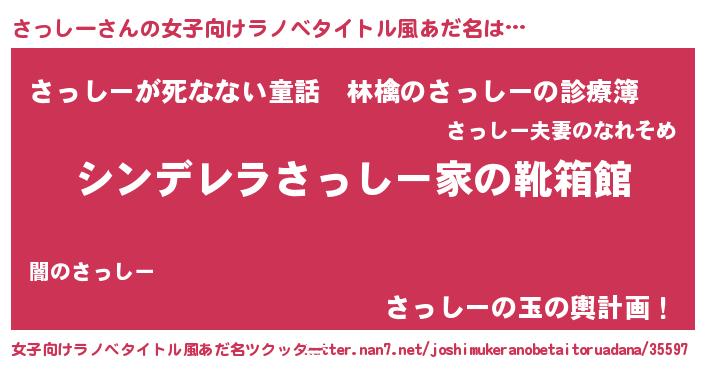 | 男性向けラノベタイトル風あだ名 | 『緋弾のサッシー』『魔弾の王とさっしー』 |