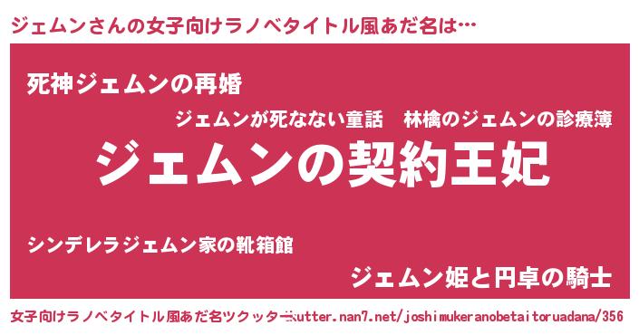 | 胡散臭い通販商品みたいなあだ名 | 『来世でも幸せになれる健康食品…その名も「ジェムン」』 |