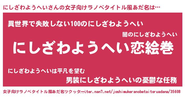 | 男性向けラノベタイトル風あだ名 | 『ノーゲーム・ノーニシザワヨウヘイ』 |