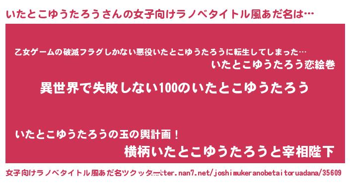 | 男性向けラノベタイトル風あだ名 | 『いたとこゆうたろうという概念が存在しない退屈な世界 』 |