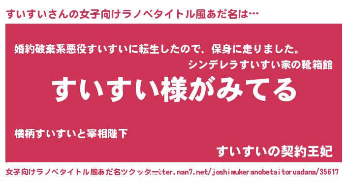 | 男性向けラノベタイトル風あだ名 | 『すいすいの嫁は女の子じゃないと思った?』 |
