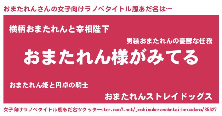 | 胡散臭い通販商品みたいなあだ名 | 『全米が絶賛したサプリメント…その名も「おまたれん」』 |