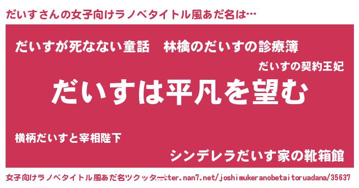 | 男性向けラノベタイトル風あだ名 | 『ダンジョンにだいすを求めるのは間違っているだろうか』 |